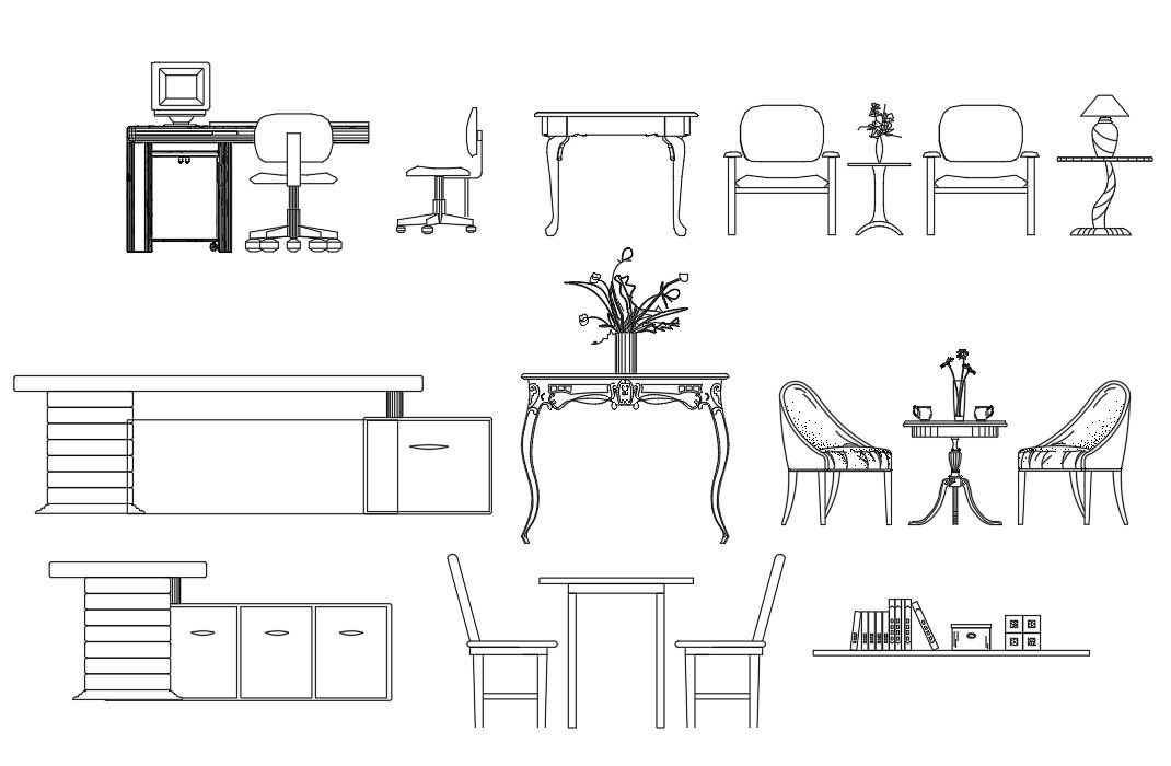 The AutoCAD DWG Drawing file of the different types of furniture block elevation design. It shows a variety of furniture block designs like a computer table with a computer, chair, and table with a flower pot, the study table and dining table block is given in this drawing. Download the AutoCAD DWG file. Thank you so much for Downloading the AutoCAD DWG files from our website.