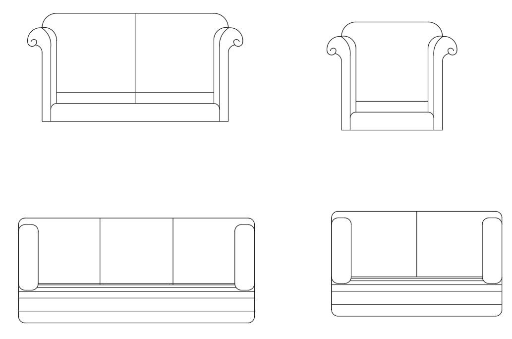 Four types of sofa chair blocks are given in this drawing. Download the AutoCAD DWG file.