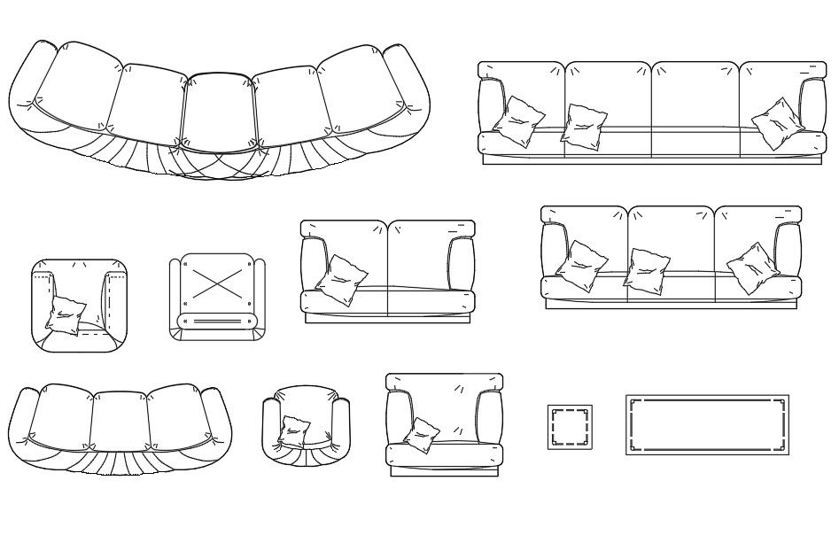 The AutoCAD drawing of nine various types of sofa furniture blocks. This drawing file having a beautiful sofa, and pillow on sofa block design. These blocks will be useful for Architects and interior designers. Download the AutoCAD drawing file. Thank you so much for Downloading the AutoCAD DWG 2d files from our website.