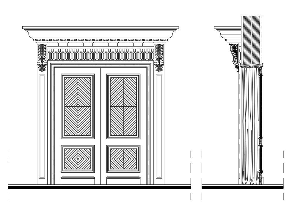 Beautiful double door blocks with side column design are given in this drawing.
