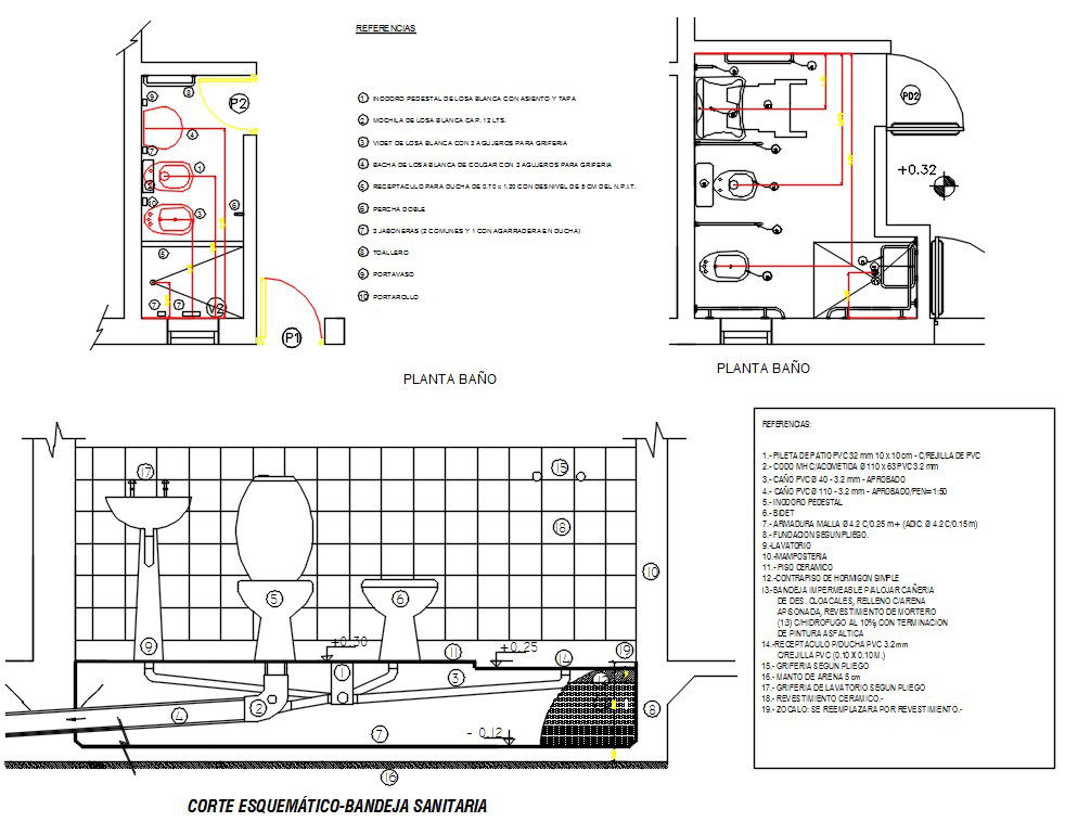 Schematic Cutting Sanitary Tray And Plumbing Drawing DWG File