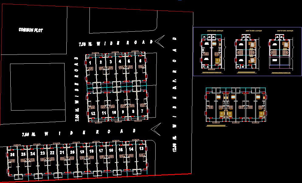 Row House Plan CAD Drawing in AutoCAD for Residential Design