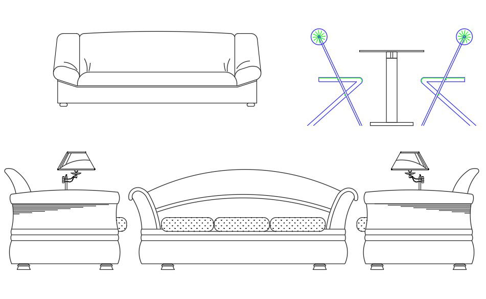 Different types of sofa set blocks are given in this drawing. This drawing has a block design of sofa set models with side tables and lamps. These blocks will be useful for civil engineers, architects, and interior designers. Download the AutoCAD DWG file. Thank you so much for Downloading the AutoCAD DWG files from our website.