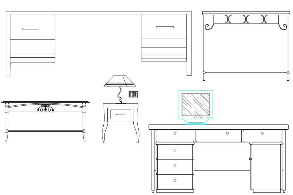 Various types of study table design Autocad furniture drawing blocks. Download the AutoCAD drawing file.