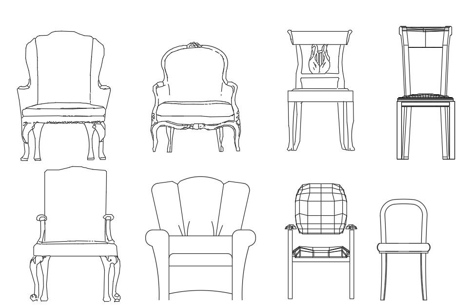 Splendid different types of 2d chair design Autocad furniture drawing blocks.Download the AutoCAD drawing file.