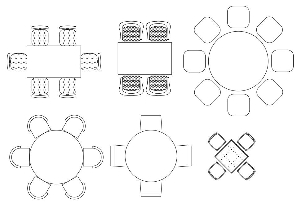 Wonderful different types of dining table block elevation design, which shows the Six variety of beautiful circle, square and rectangular dining table designs are given. Download the AutoCAD Dwg drawing file. These blocks are useful for civil engineers, architects, and interior designers. They can use this block for the dining room, hotel, and restaurant drawing. Download the AutoCAD Dwg drawing file. Thank you so much for Downloading the AutoCAD DWG files from our website.