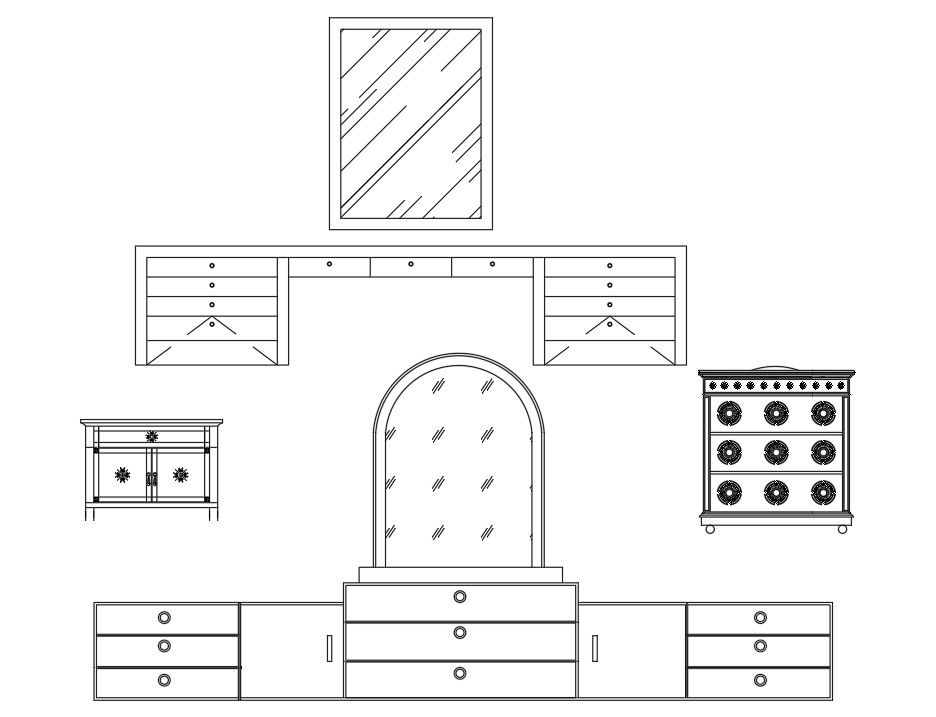 Two Different styles of dressing table design Autocad drawing blocks. Download the AutoCAD drawing file.