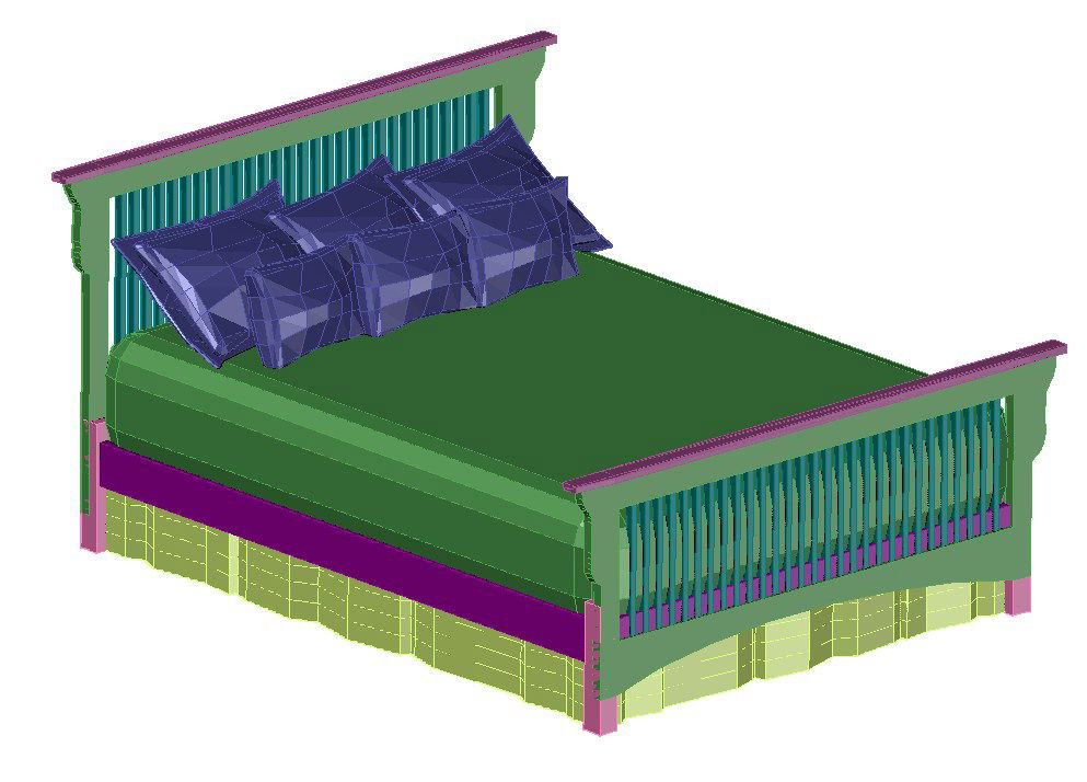 3d Double Bed free download DWG file Most modern beds consist of a soft, cushioned mattress on a bed frame, the mattress resting either on a solid base, often wood slats, or a sprung base. Many beds include a box spring inner-sprung base, which is a large mattress-sized box containing wood and springs that provide additional support and suspension for the mattress. Beds are available in many sizes, ranging from infant-sized bassinets and cribs, to small beds for a single person or adult, to large queen and king-size beds designed for two people.