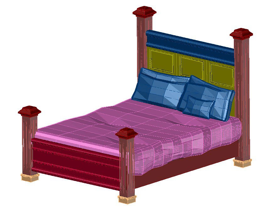 Most modern 3d Double Bed With Headboard DWG File consist of a soft, cushioned mattress on a bed frame, the mattress resting either on a solid base, often wood slats, or a sprung base. Many beds include a box spring inner-sprung base, which is a large mattress-sized box containing wood and springs that provide additional support and suspension for the mattress. Beds are available in many sizes, ranging from infant-sized bassinets and cribs, to small beds for a single person or adult, to large queen and king-size beds designed for two people. download free DWG file.
