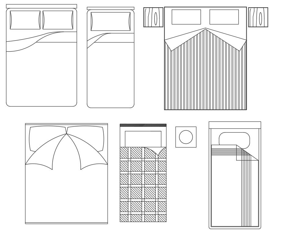 Six Types of AutoCAD Bed Design Blocks in DWG Format