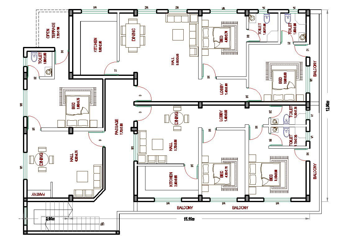 Residential House Floor Plan Design in AutoCAD DWG File