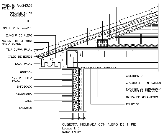 Inclined roof with bond over brick walls