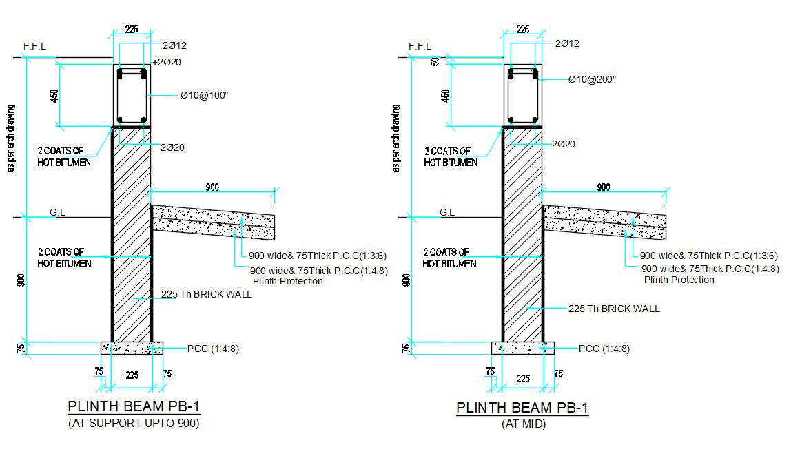 Plinth Beam Section Drawing Free Download DWG File