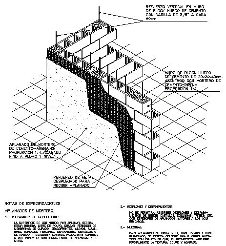 Reinforced Cement Block Wall Design DWG with Mortar Details