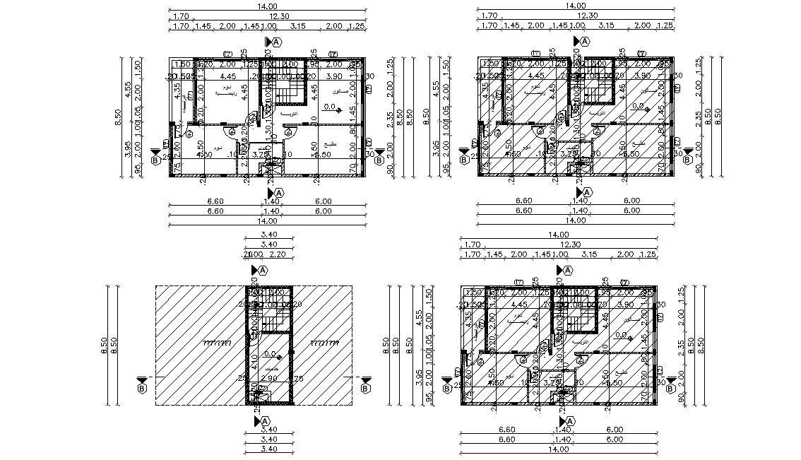 1500 Square Feet size residential bungalow design architecture plan that shows bungalow all floor detailed working plan along with bungalow construction dimension working set, terrace layout, column arrangement, section line, and bungalow various other accommodations details. Download bungalow design architecture CAD plan.