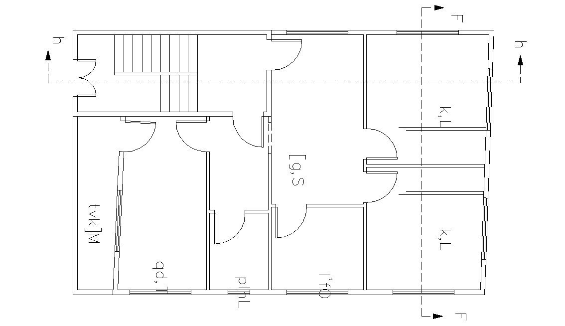 Herer presents the small two BHK apartments architecture layout plan that shows the apartment design plan along with room details, staircase, door window annotation, bedroom attached balcony area, and house other accommodations details. Download the apartment design layout plan for free.
