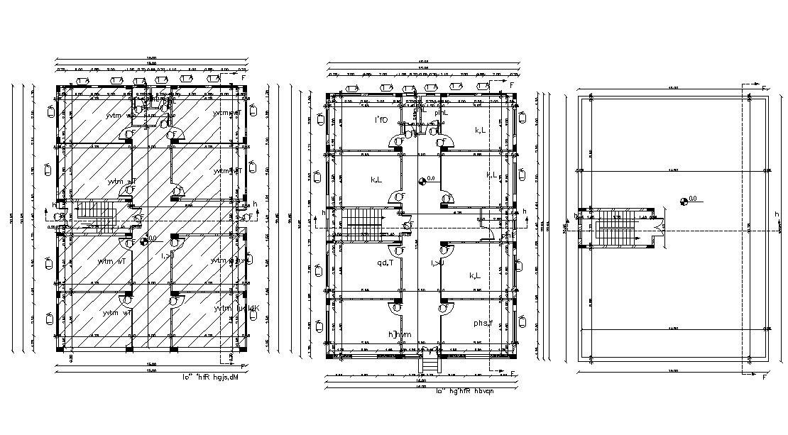 Dormitory Building Design ground floor first floor and terrace layout plan that shows building flooring details along wth building construction dimension working set, section line, staircase, room design, column arrangement, and building various other amenities detailing. Download architecture building layout plan for detailed working drawing.