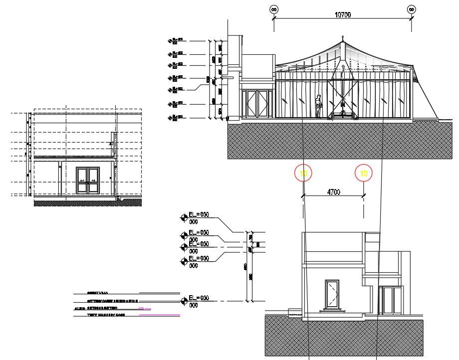 DWG AutoCAD drawing of the single storey house elevation and section details. Sectional details are clearly given in this drawing file. Also, the wall section available in this DWG file. Download the AutoCAD DWG file. Thank you so much for downloading DWG file from our website
