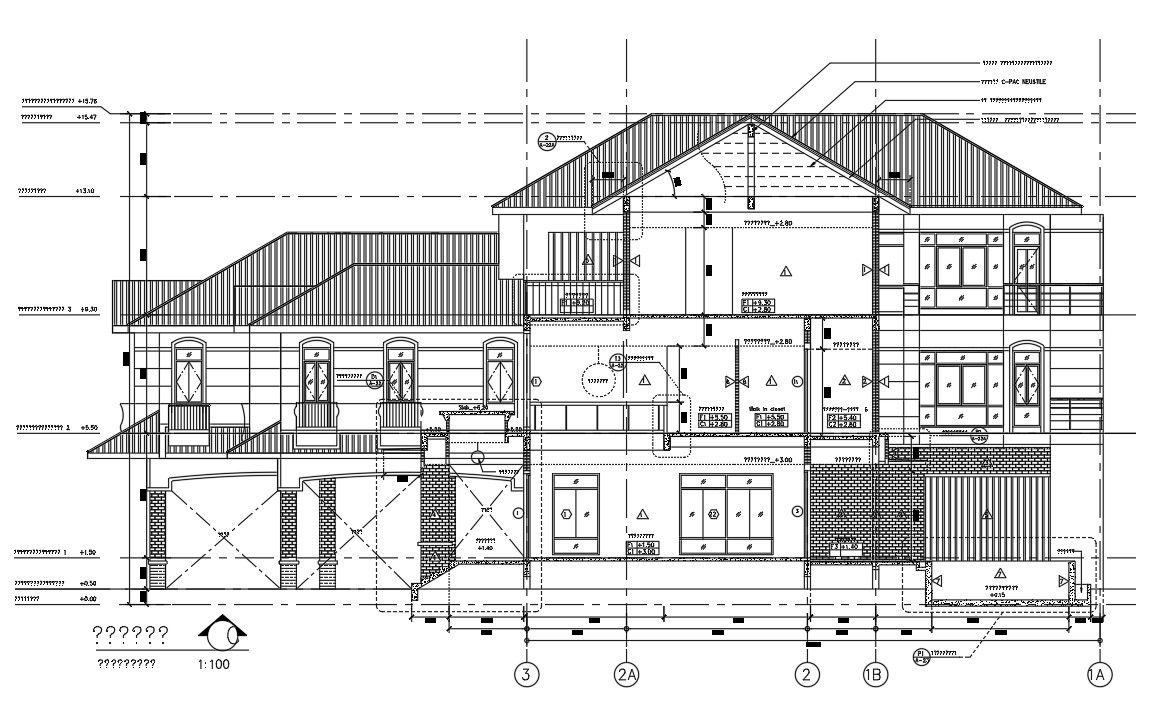 Architectural Residential G+2 Building section detail Autocad Drawing is available. Amazing front elevation details are available in this drawing file. The door, window, and top roof are visible in this elevation drawing. Download the AutoCAD DWG file. Thank you so much for downloading DWG file from our website