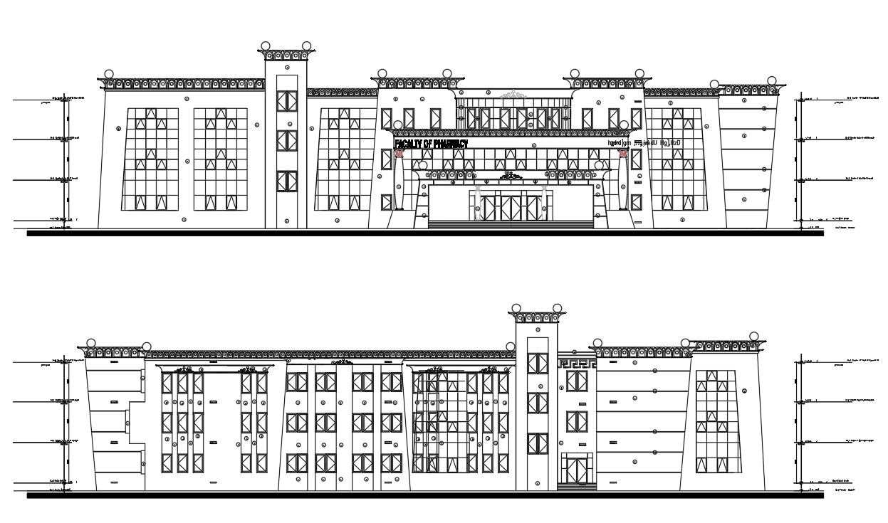 Wonderful section and the elevation details of the pharmacy college building AutoCAD DWG Drawing File. Download the AutoCAD DWG file.