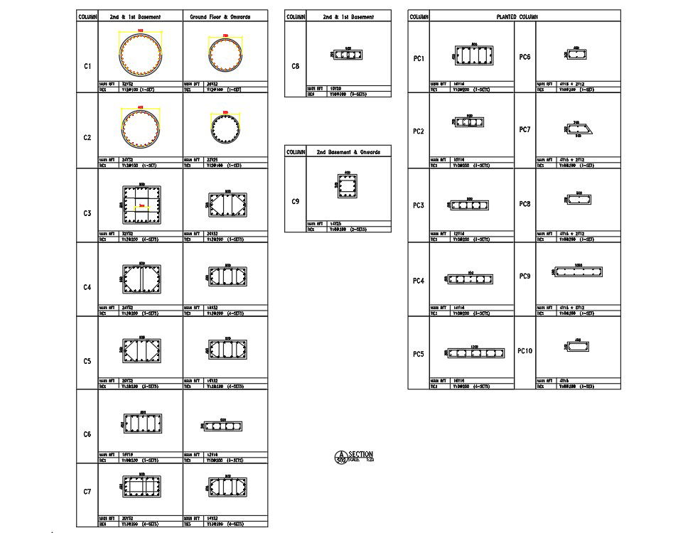 The column reinforcement cross-section details are given in this drawing. Sectional details are clearly given in this drawing file. The detailed section plan of column reinforcement is given in this DWG file. Download the AutoCAD 2D DWG file. Thank you so much for downloading DWG file from our website