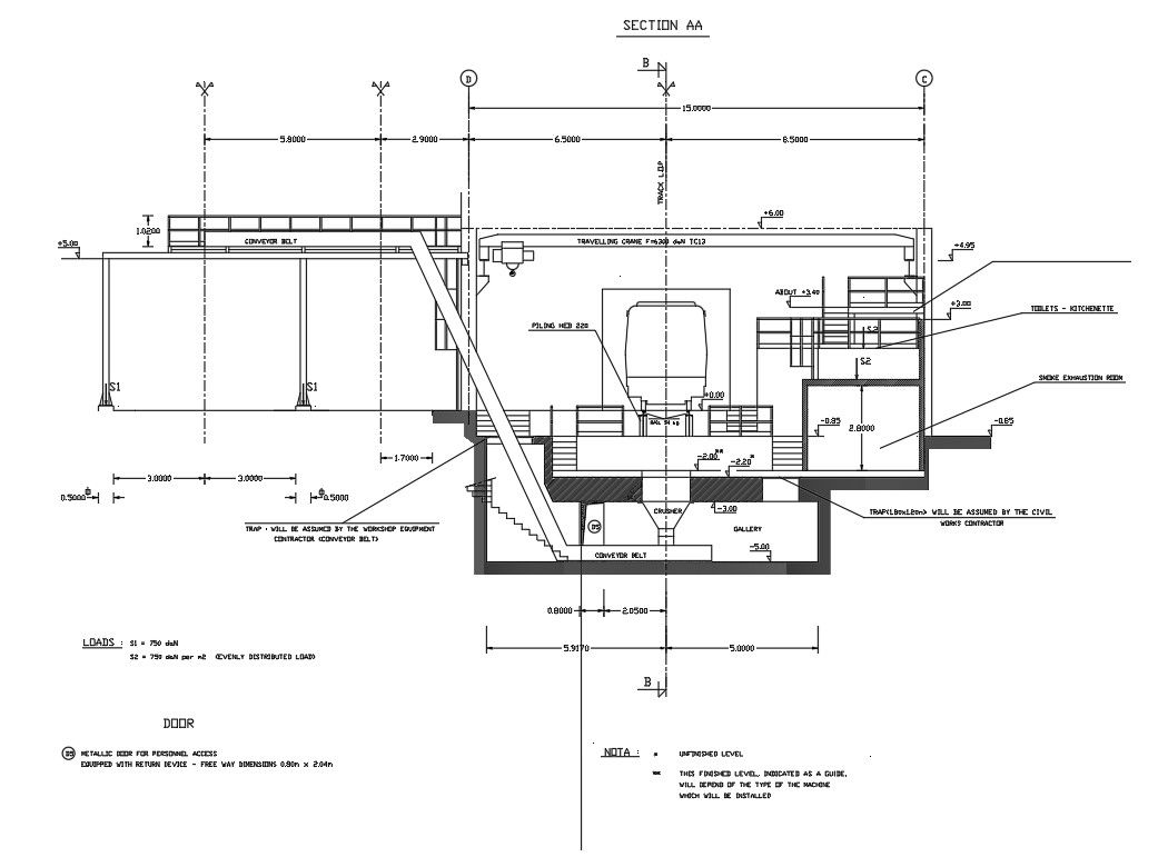 DWG drawing of the traveling crane section details. Sectional details are clearly given in this drawing file. Also, the conveyor belt, trap are mentioned in this DWG file. Download the AutoCAD DWG file. Thank you so much for downloading DWG file from our website