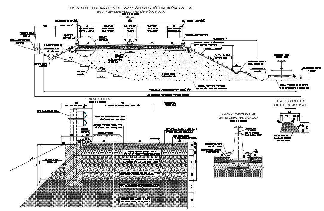 AutoCAD drawing of the typical cross-section of the expressway details.Download the AutoCAD DWG file.