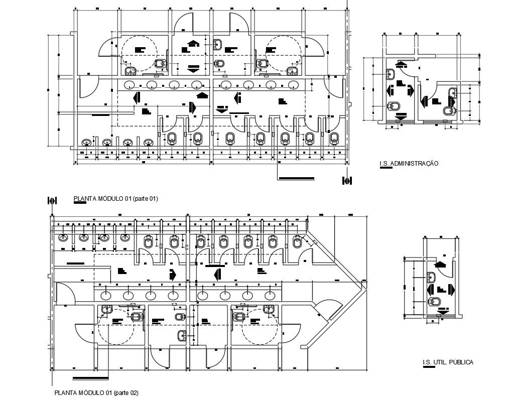 The AutoCAD DWG Drawing of the Public Toilet floor plan and section details with the toilet blocks.Download the AutoCAD 2D DWG file.
