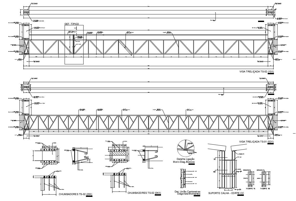 DWG AutoCAD 2D drawing of the bridge steel structure section details.Download the AutoCAD DWG file.
