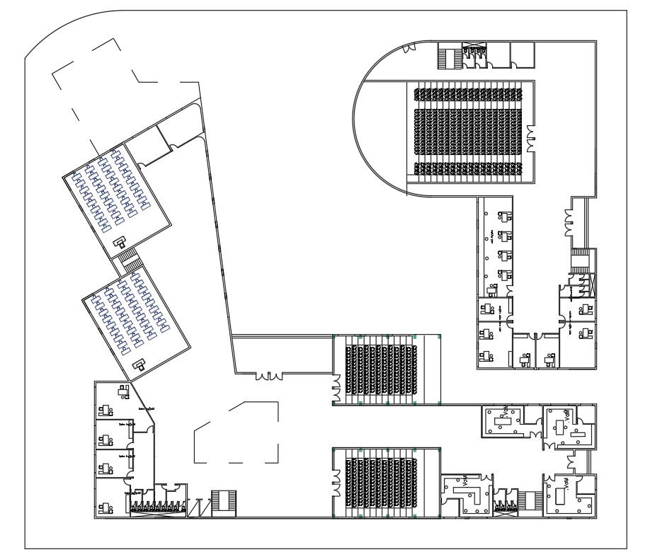 AutoCAD drawing of the college building floor plan layout and section details are available. Download the AutoCAD 2D DWG file.