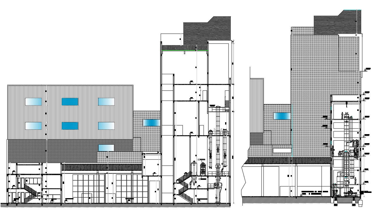 Autocad drawing file having the details of sectional details of the warehouse. The section gives the details of the dimension of the factory , height of the factory etc. factory made of steel truss is shown in detail in the section drawing. The top floor having rooms are covered with claddings and glass windows are provided. The machinery are shown in detail in the sectional drawing. Thanks for Downloading AutoCAD DWG and other CAD program files from our website.