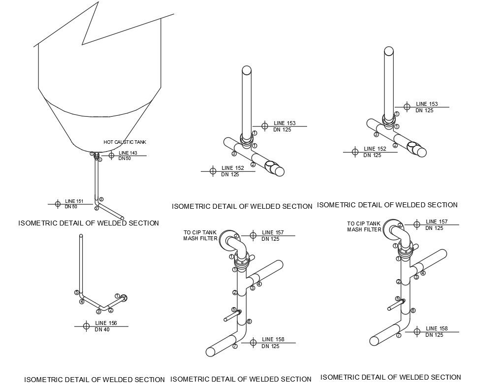 CAD drawing file gives the Details of Butt Weld Section in isometric views. This DWG file having the weld mapping & Butt welded connection design is available. There are 6 types welded connections details, number of welding,different piping materials ,equipment details,welding parts are clearly explained in this Drawing.Download the AutoCAD DWG file.Thank you so much for downloading AutoCAD files from cadbull website.