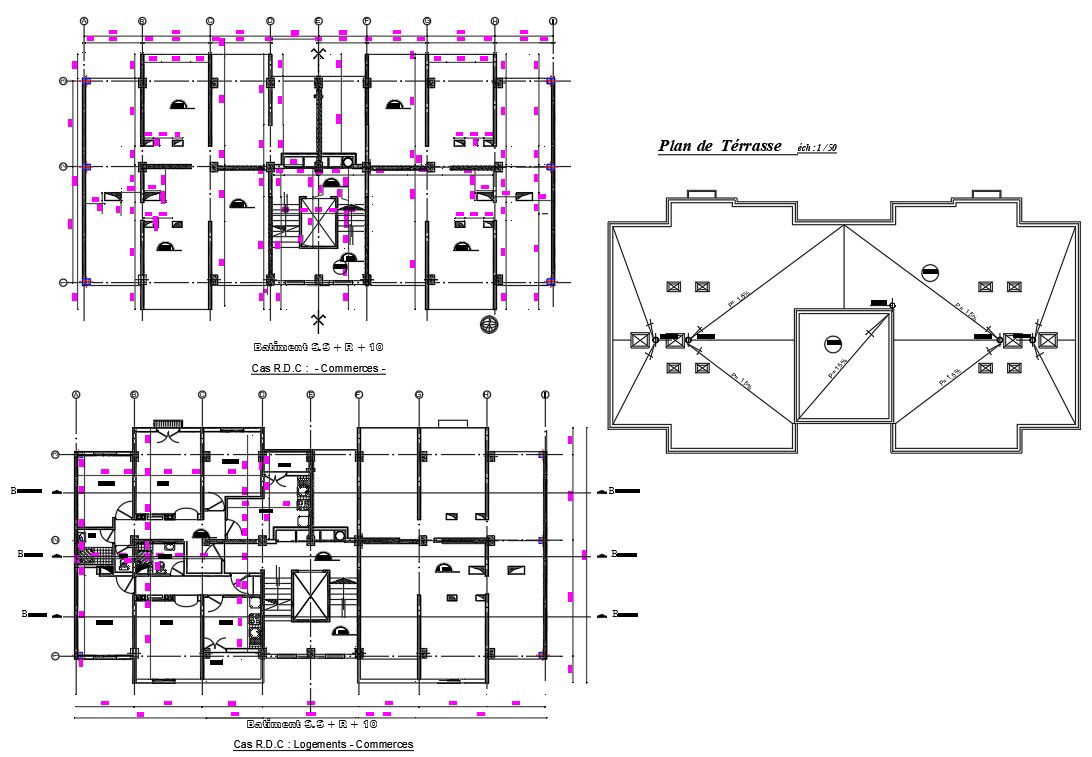 Twin House plan 2BHK CAD Drawing is available in this DWG AutoCAD Drawing file. There are two houses in this house plan drawing, Both the house is almost the same. This house plan contains three-bedroom, the master bedroom with the attached toilet, the guest bedroom, and the children's bedroom with the attached toilet. kitchen, Hall, Dining room, and the Common toilet is available. Download Autocad DWG and PDF file format of this house plan drawing.