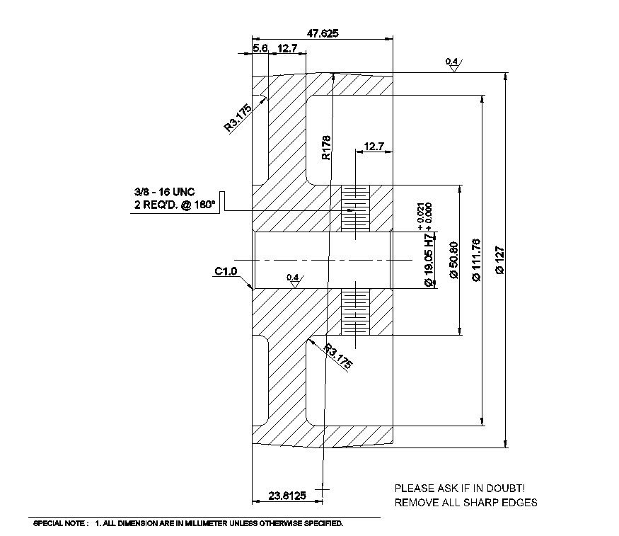 CAD DWG detailed section drawing of the flat belt pulley is given in this CAD DWG file.