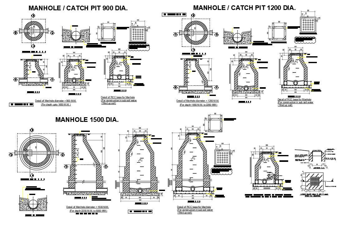 2D Autocad Drawing having the details of the Manhole Catch Pit.Download the DWG AutoCAD file.
