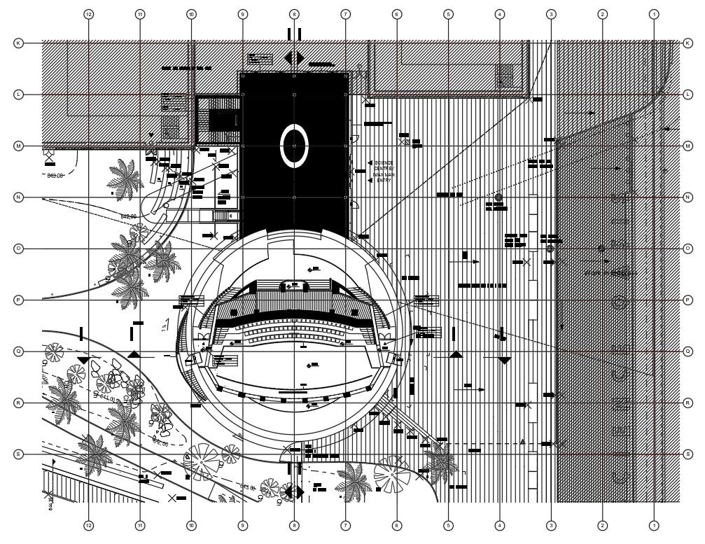 AutoCad DWG file showing the details of the IMAX Theater Ground Floor plan and the Sectional details