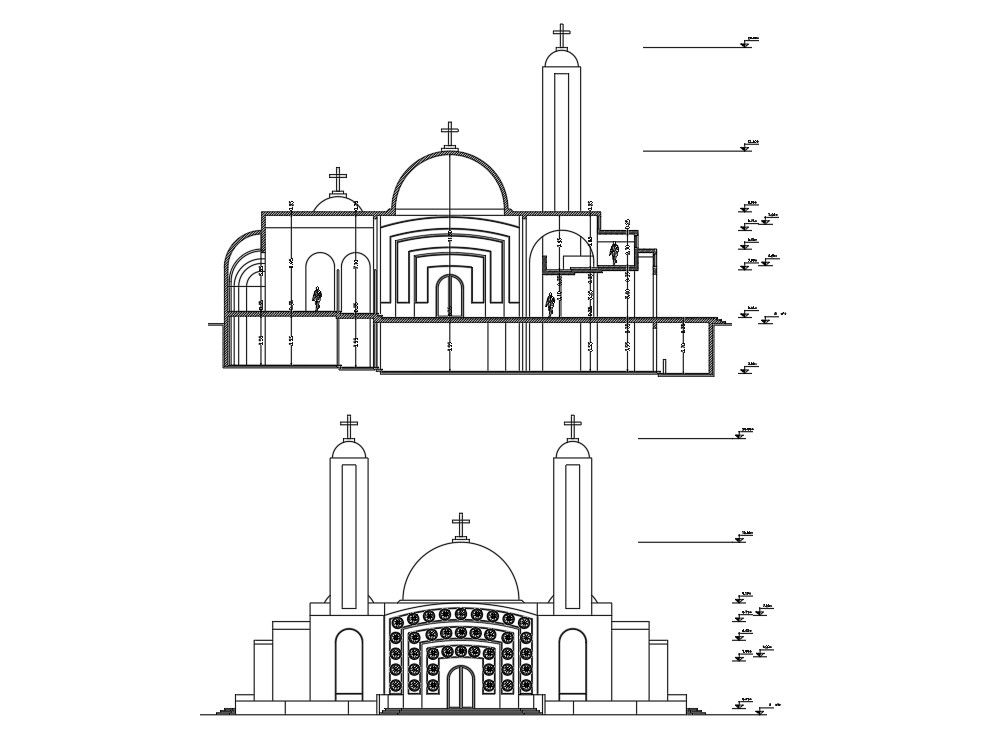 DWG Autocad drawing file Showing the Elevation details of the Church. Download the AutoCAD 2D DWG file.