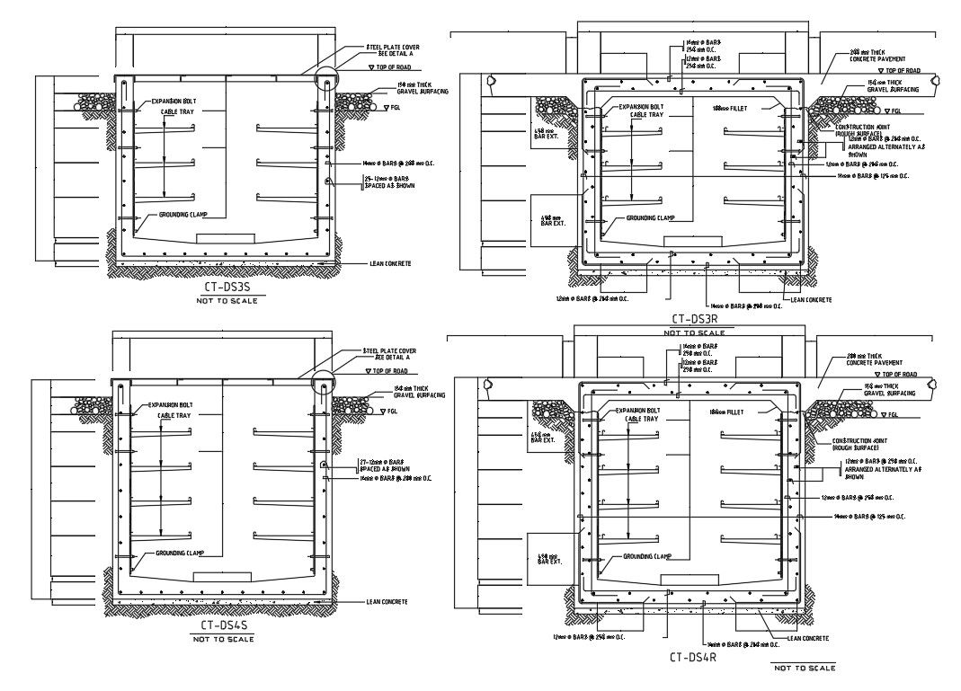 The file shows the Autocad 2D DWG drawing file of the cable trench inside. Lean concrete is provide and it is a mix where the amout of cement is lower than the amout of liquid present in the strate. This make it ideal as base layer where other kinds of concrete are placed on top. Steel plated is used to strenghten foundation. Expansion bolts are used to secure the heavy object like wall, floor. Thanks for downloading the 2D Autocad file and other CAD files from our website.