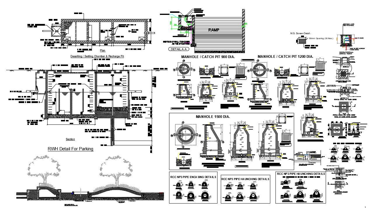 / filled up soil. download free DWG file of RCC pipe hunching CAD drawing DWG file.