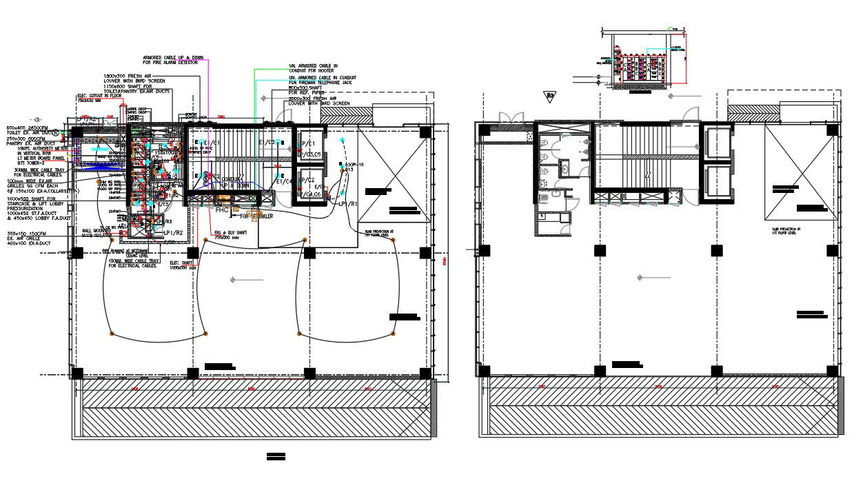 Ground floor plan and layout of office building is given in 2D Autocad DWG drawing file. Plumbing layout, electrical layout, alarm, fire and HVAC details were mentioned in this drawing file. Structural glazing were provided as per vendors detail. Slab projection were given at 1st floor level. Electrical details were mentioned. Thanks for downloading the autocad 2D DWG drawing file and other CAD program from the our cadbull website.