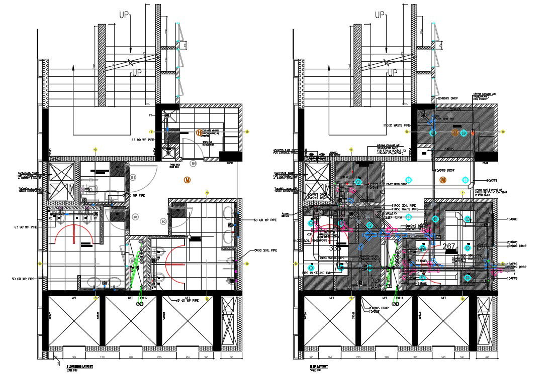 Flooring layout and MEP layout were given in this Inspire business parking in the form of 2D Autocad drawing model. Pipe in ceiling, water pipe, soil pipe, drops were mentioned in this drawing file. There are three lifts provided and size of the lift is mentioned clearly. At flooring layout exhaust air, WP pipe, toilets, disabled toilets, soil pipe were mentioned. Thanks for downloading the autocad 2D DWG drawing file and other CAD program from the our cadbull website.