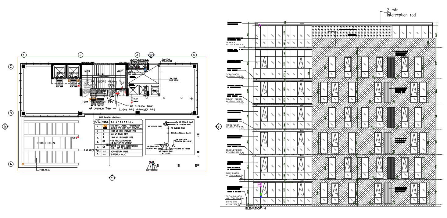 DWG drawing file shows the 2D Autocad model of fire fighting terrace plan. Download the Autocad 2D DWG file.