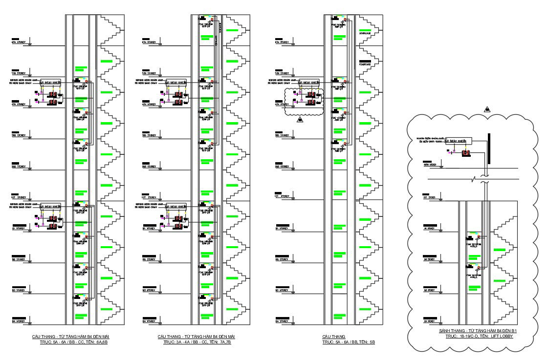 Staircase details of smoke exhaust commercial building were given in this autocad file. In this file stairs from the basement to roof details were given. Landscape details of stairs were given. Details of lift lobby is given in this drawing file. Thank you for downloading the cad file and other program file from our website.