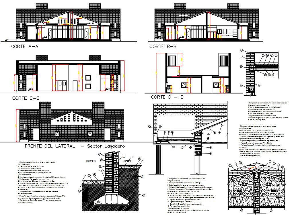 Single Storey House Building Sectional Elevation Drawing DWG File