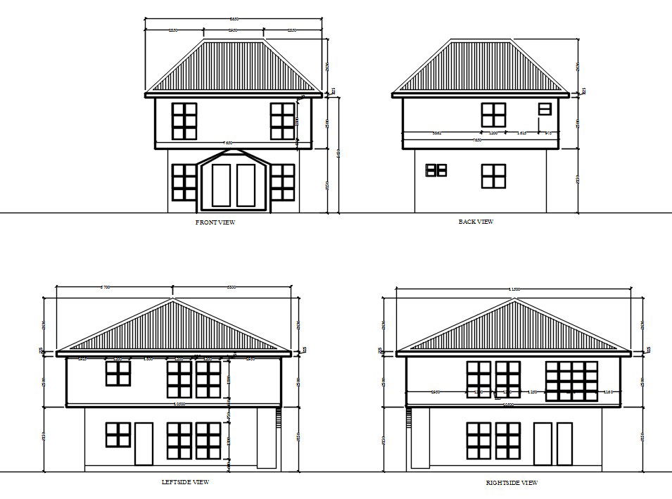 2 Story floor level house deck with gallery or a faith base community setting at an urban sprawl area. Traditional orthodox influence design for normal day lighting to save cost. Download 2 storey house building all side elevation design DWG file.
