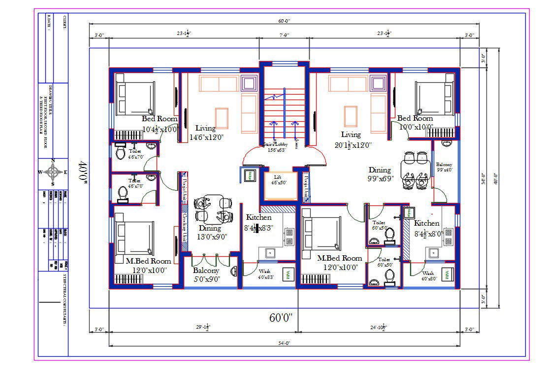 60x40 Ft 2BHK Apartment Furniture Layout Plan DWG File