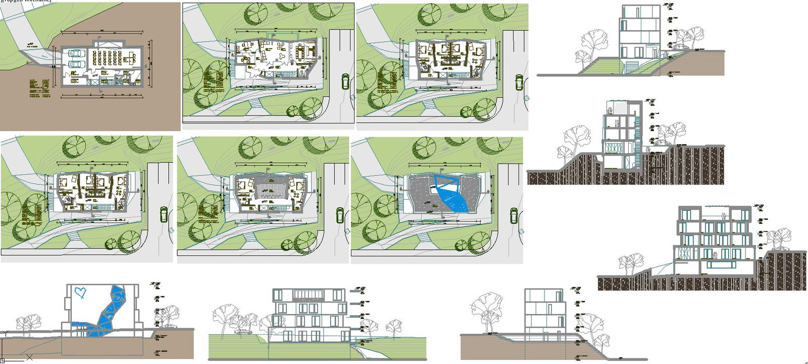 Modern house architecture layout plan inlude this cad drawing presentations plan,sections, elevations, detail of architecture and landscaping design.