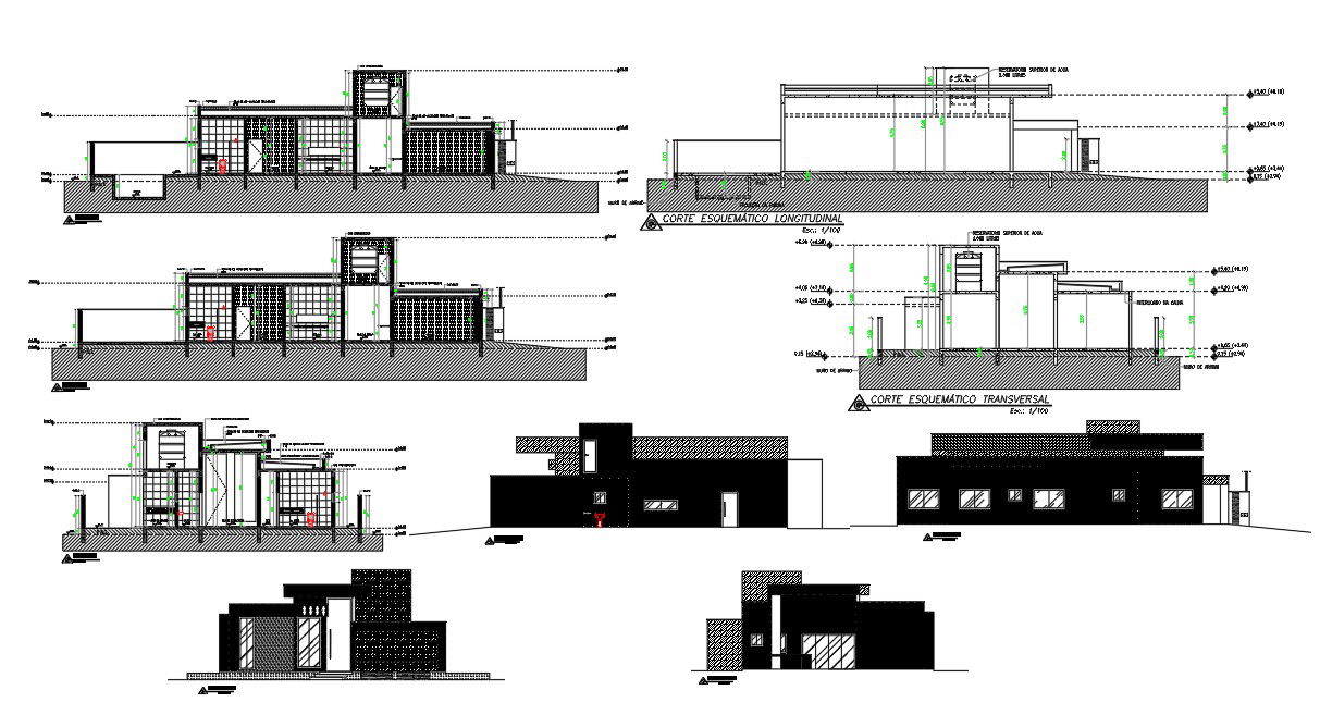Detailed drawing of elevation and section of residence project given in this 2d autocad drawing. This drawing shows detailed section of toilet area and overhead water tank and side elevation drawing in this file.A wall tiling in toilet area also shown with floor height dimension in this file.Download the Autocad DWG drawing file.