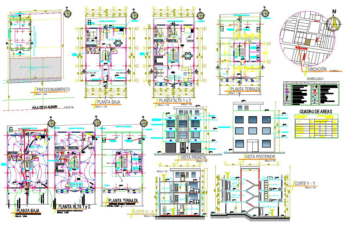 house design with plan,elevations,sections, and including all detail in autocad. & All Lay-out detail in the DWG file.