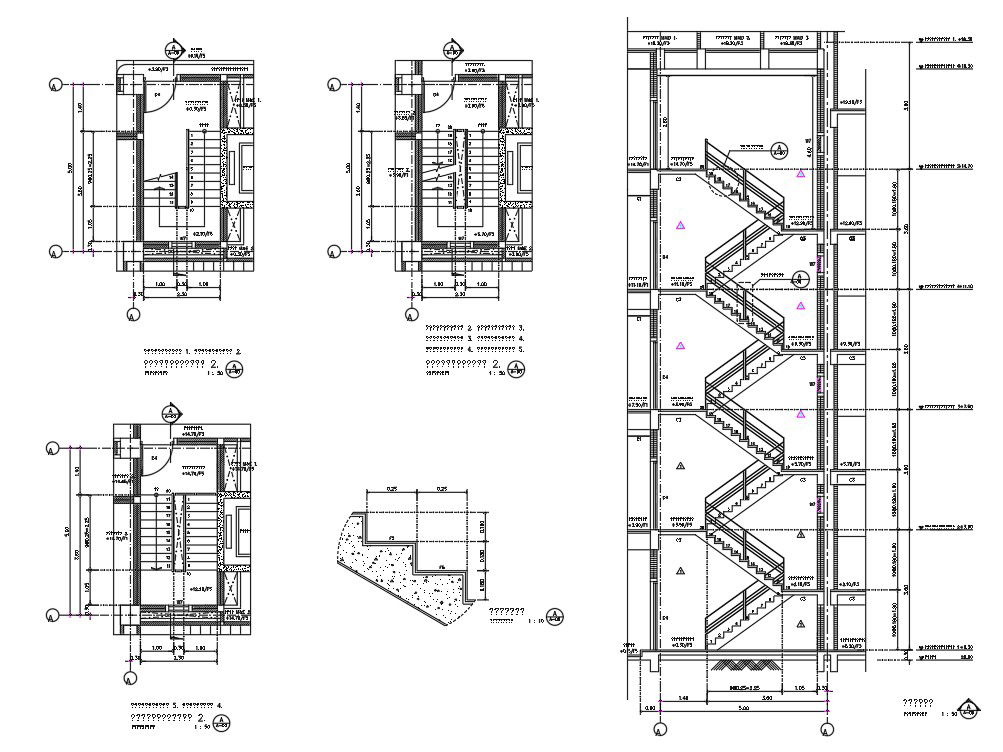 Apartment Building Staircase Plan And Section Drawing DWG File